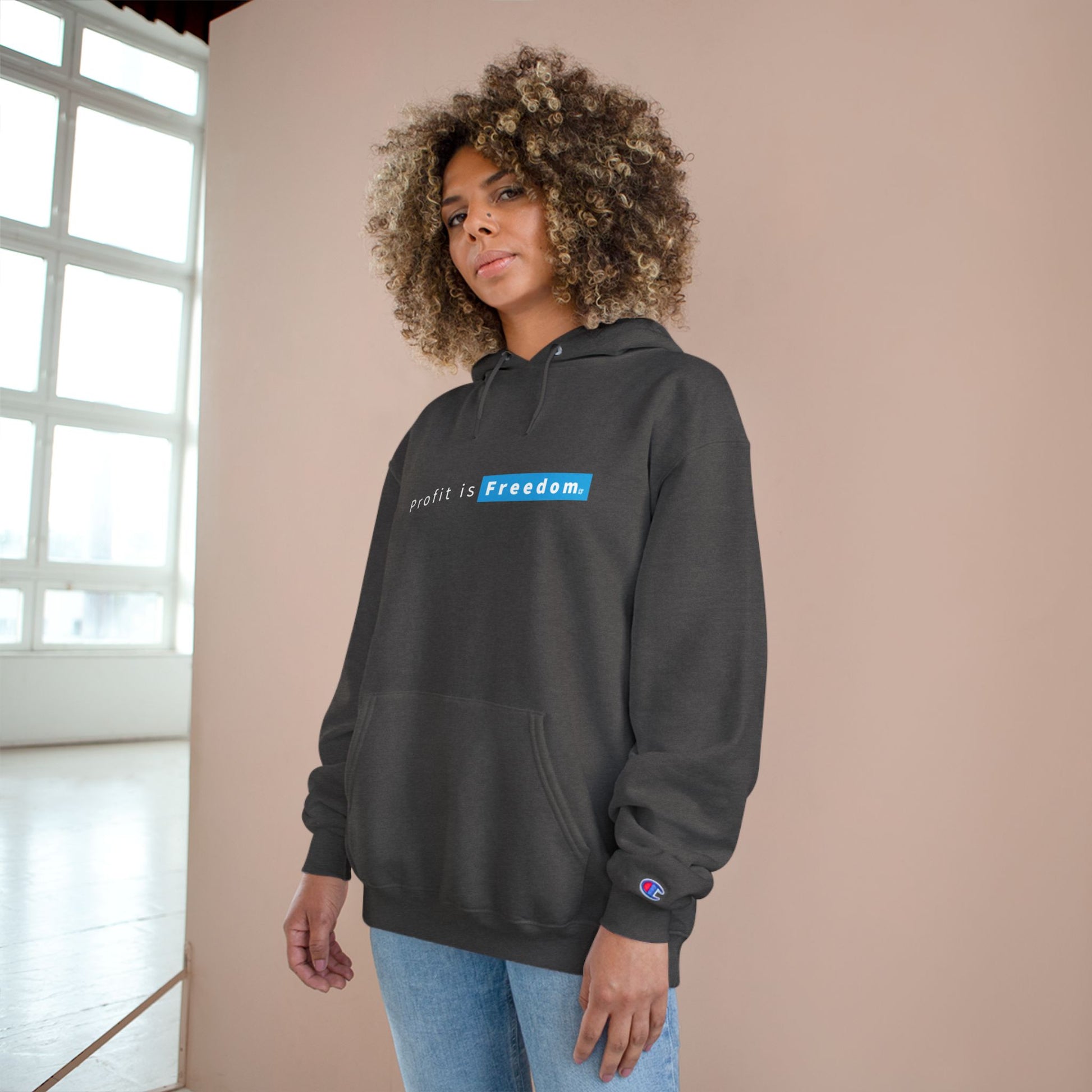 Hoodie — "Profit is Freedom." Minimalist White Champion Hoodie